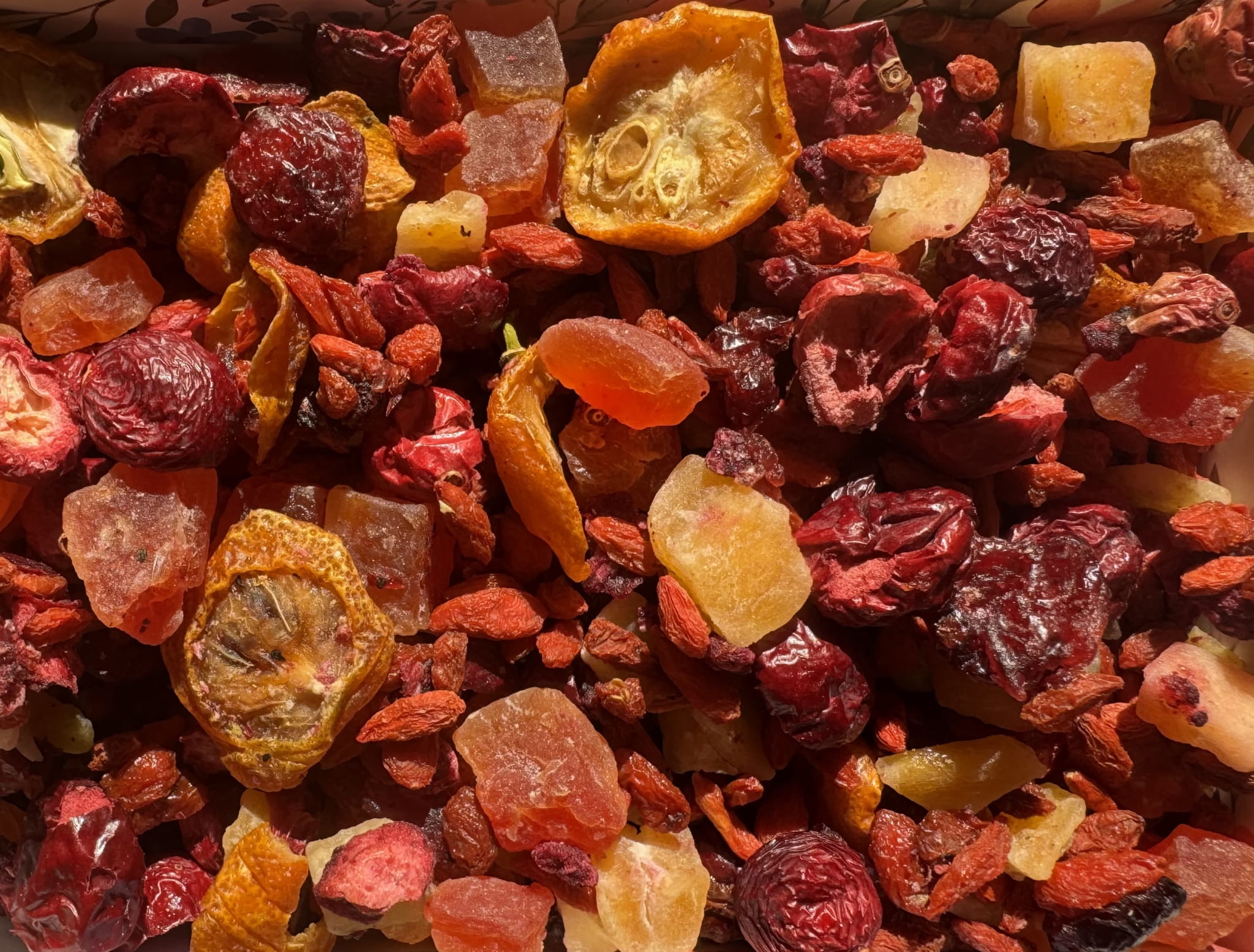 Skład: Bazą mieszanki są wysokogatunkowe owoce liofilizowane: MANGO, OWOCE GOJI, PAPAJA, ŻURAWINA, KUMKWAT I SMOCZY OWOC.